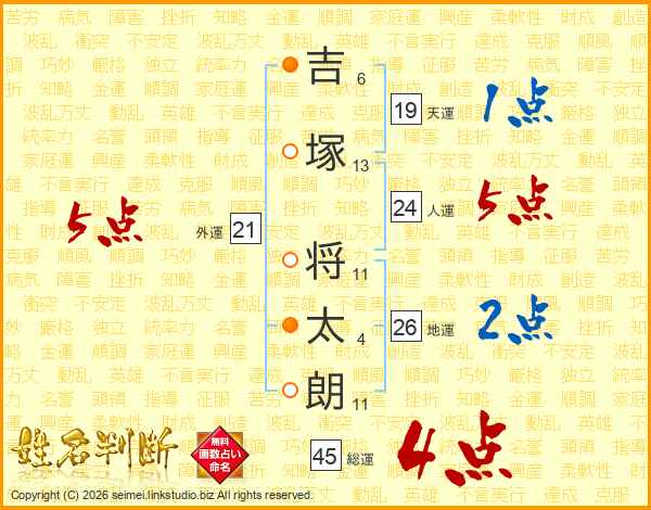 吉塚将太朗さんの総運は45画の4点!