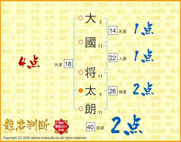 大國将太朗さんの地運は26画の2点!
