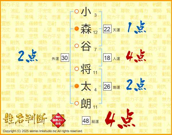 小森谷将太朗さんの総運は48画の4点!