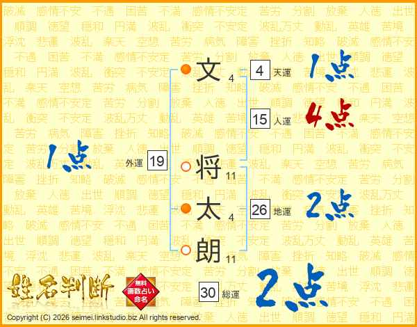 文将太朗さんの地運は26画の2点!