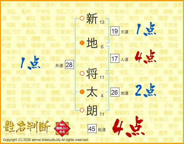 新地将太朗さんの地運は26画の2点!