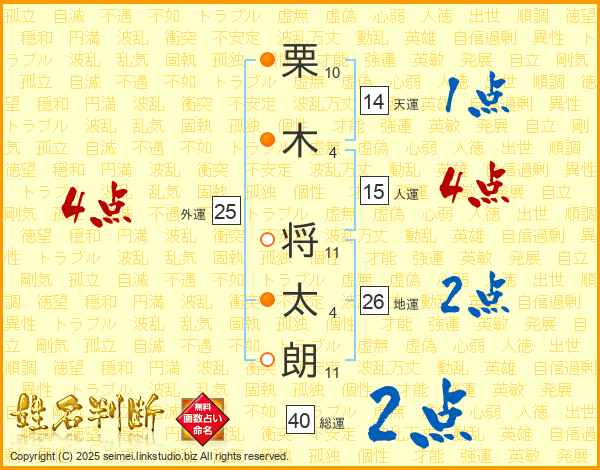 栗木将太朗さんの総運は40画の2点!