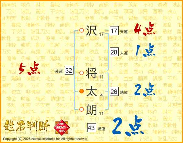沢将太朗さんの外運は32画の5点!