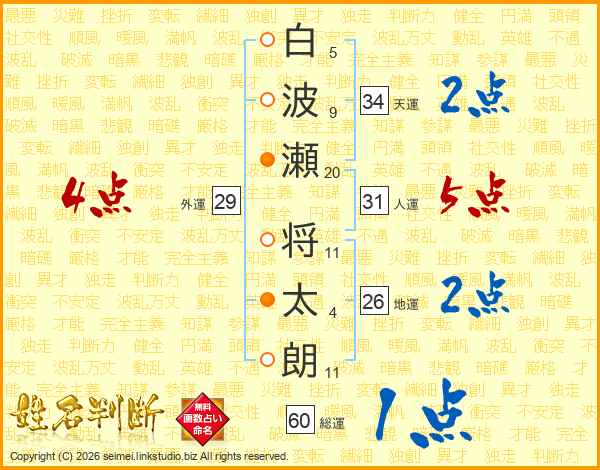白波瀬将太朗さんの地運は26画の2点!
