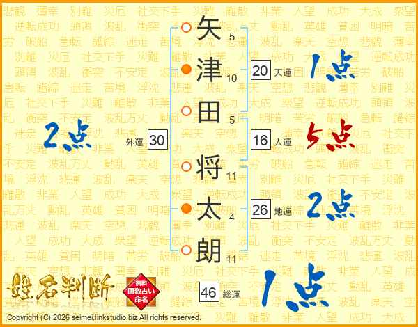 矢津田将太朗さんの地運は26画の2点!