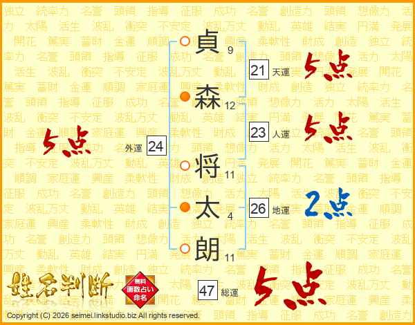 貞森将太朗さんの総運は47画の5点!
