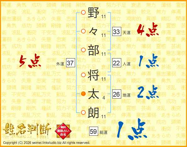 野々部将太朗さんの地運は26画の2点!