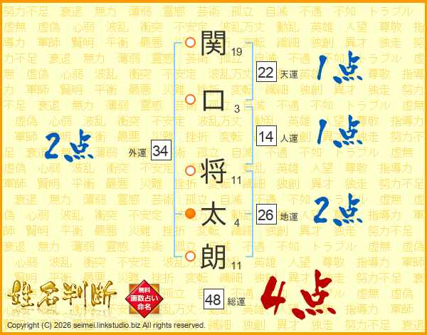 関口将太朗さんの地運は26画の2点!