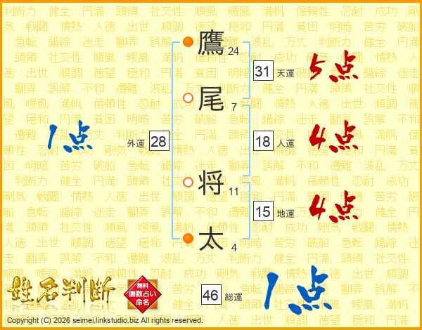鷹尾将太さんの総運は46画の1点!