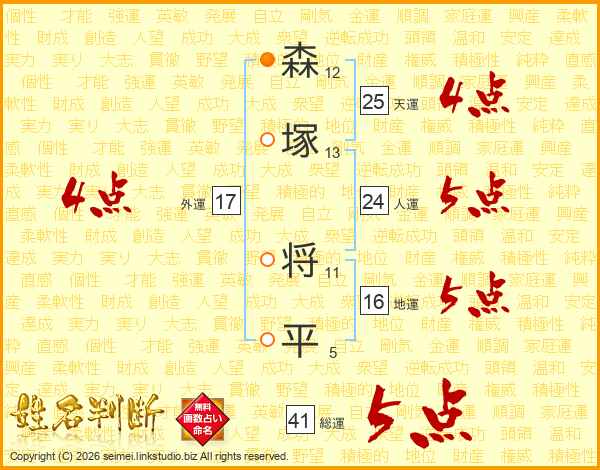 森塚将平さんの総運は41画の5点!