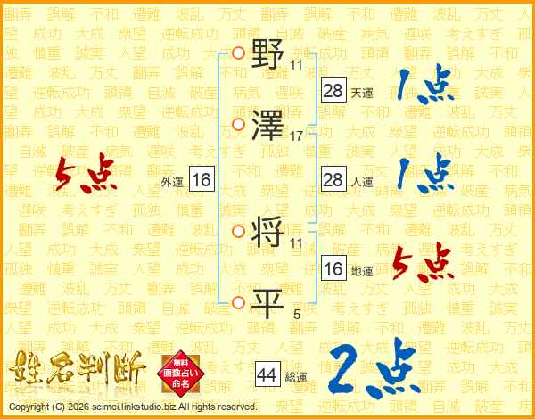 野澤将平さんの総運は44画の2点!