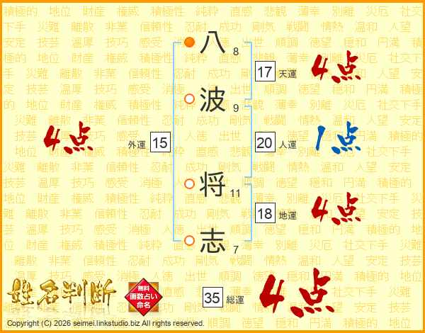 八波将志さんの総運は35画の4点!