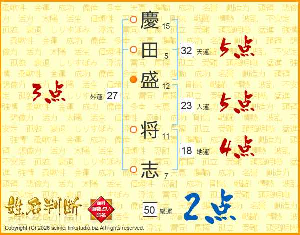 慶田盛将志さんの総運は50画の2点!
