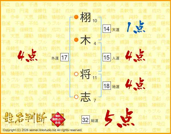 栩(10画)木(4画) 将(11画)志(7画)
