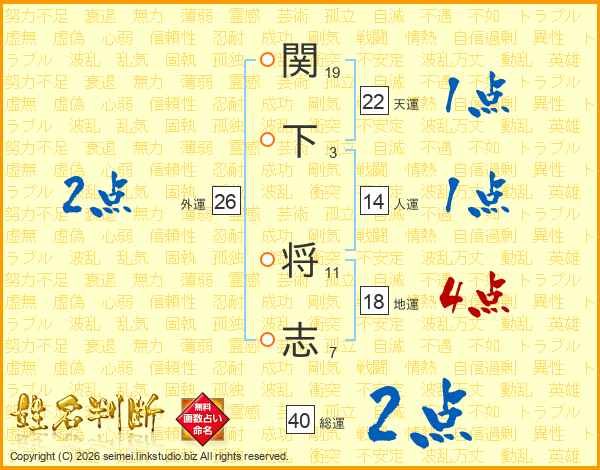 関下将志さんの地運は18画の4点!