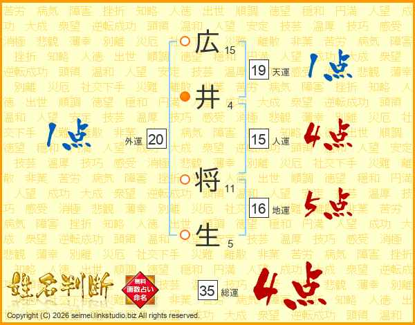 広井将生さんの総運は35画の4点!