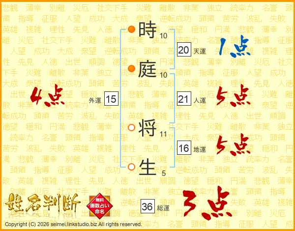 時庭将生さんの人運は21画の5点!