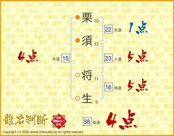 栗須将生さんの総運は38画の4点!