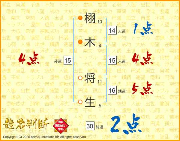 栩木将生さんの総運は30画の2点!