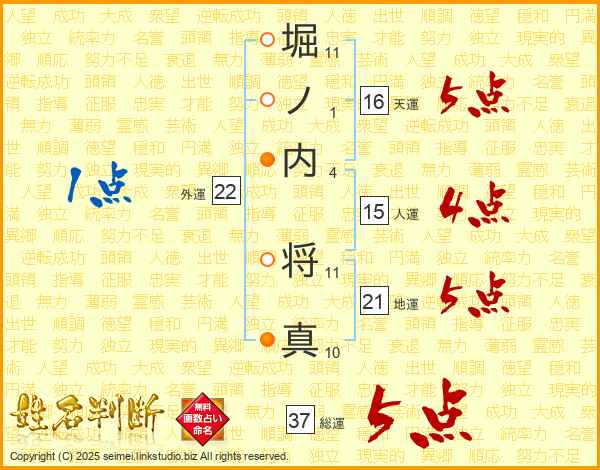 堀ノ内将真さんの総運は37画の5点!