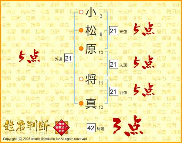 小(3画)松(8画)原(10画) 将(11画)真(10画)