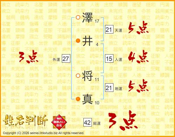 澤井将真さんの地運は21画の5点!