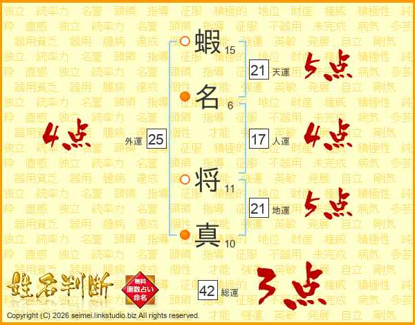 蝦名将真さんの地運は21画の5点!