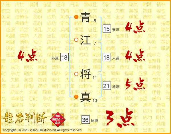 青江将真さんの地運は21画の5点!