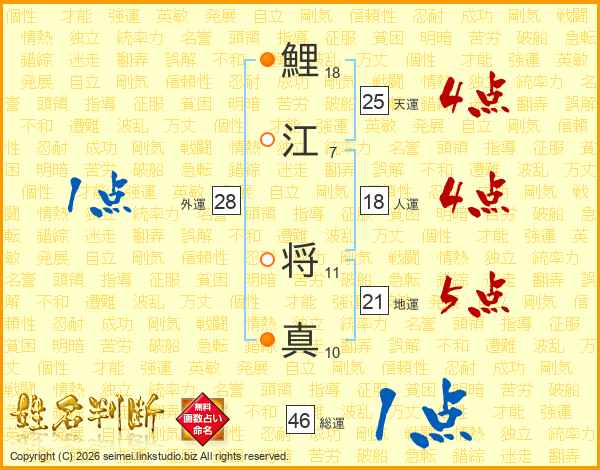 鯉江将真さんの総運は46画の1点!