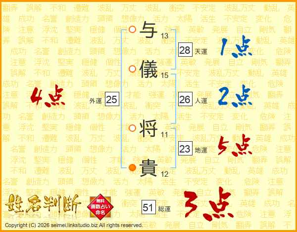 与儀将貴さんの総運は51画の3点!