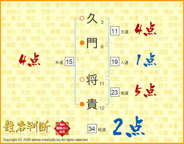 久門将貴さんの総運は34画の2点!
