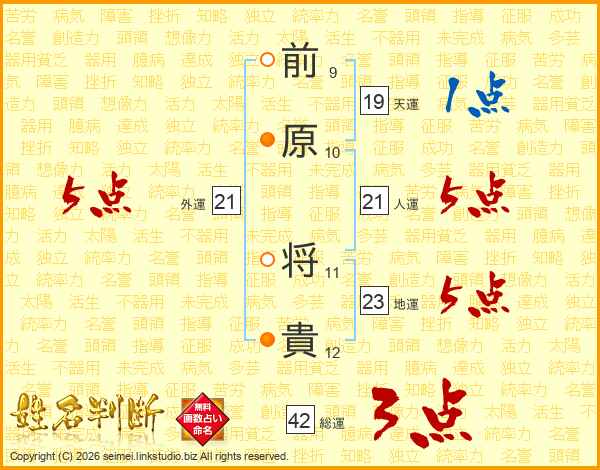 前原将貴さんの人運は21画の5点!