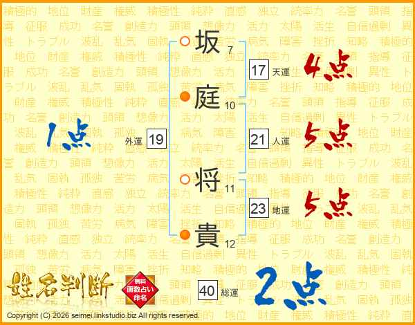 坂庭将貴さんの人運は21画の5点!