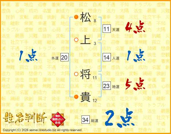 松上将貴さんの人運は14画の1点!