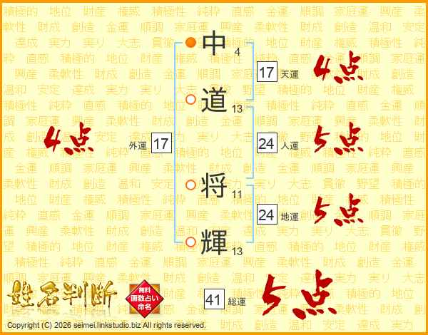 金運 順調 家庭運 興産 柔軟性 財成 創造