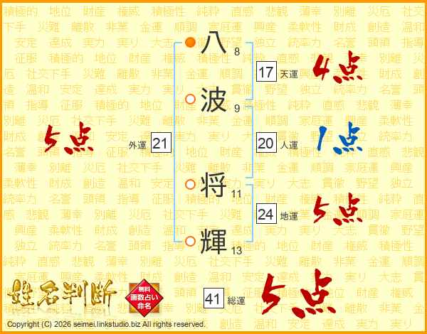 八波将輝さんの総運は41画の5点!