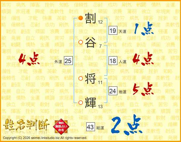 割谷将輝さんの総運は43画の2点!