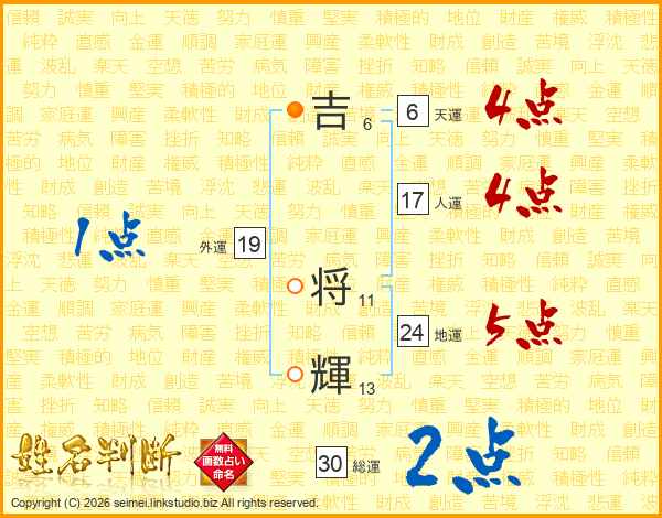 吉将輝さんの総運は30画の2点!