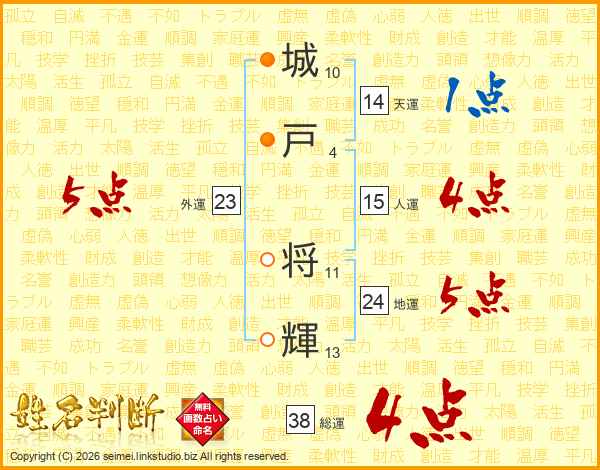 城戸将輝さんの総運は38画の4点!