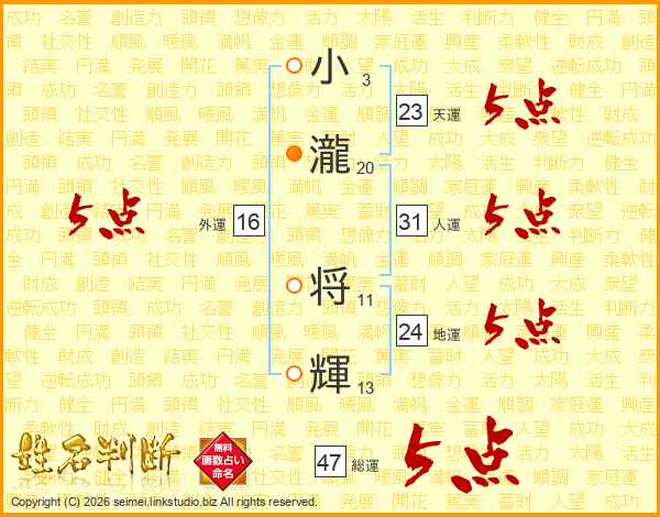 小瀧将輝さんの人運は31画の5点!
