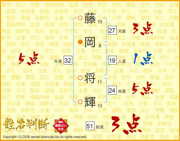 藤岡将輝さんの総運は51画の3点!