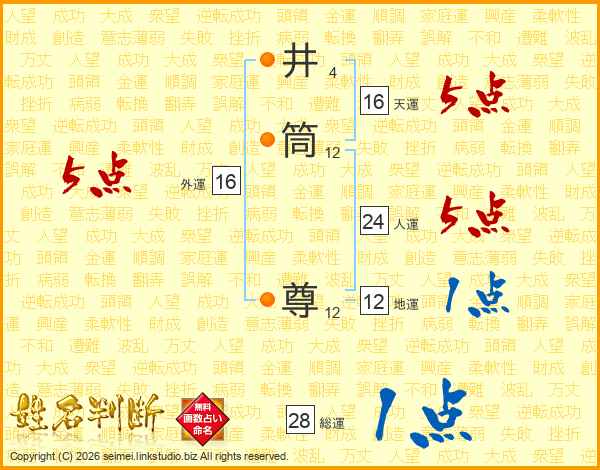 井筒尊さんの総運は28画の1点!