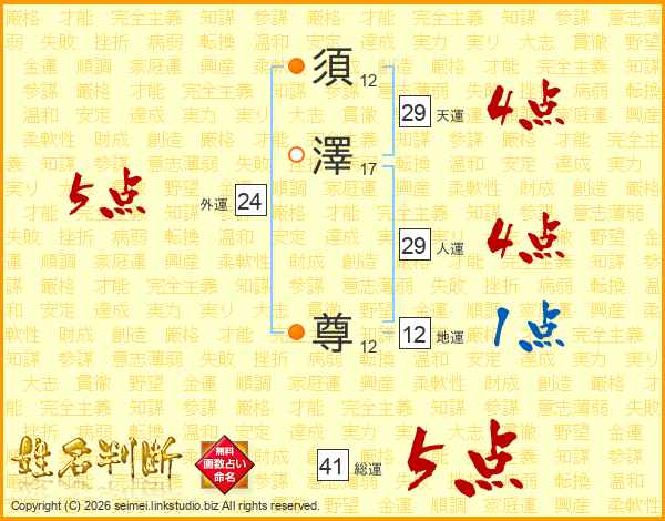 須澤尊さんの総運は41画の5点!