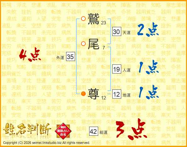 鷲尾尊さんの天運は30画の2点!