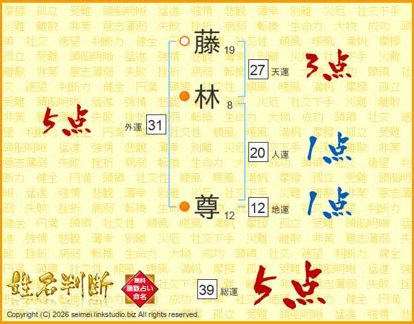 藤林尊さんの総運は39画の5点!