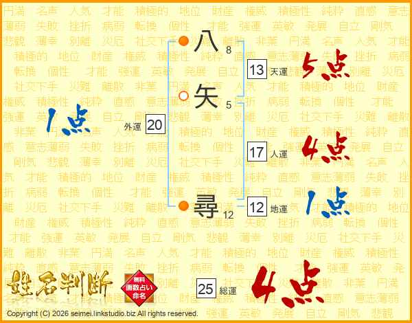 八矢尋さんの総運は25画の4点!