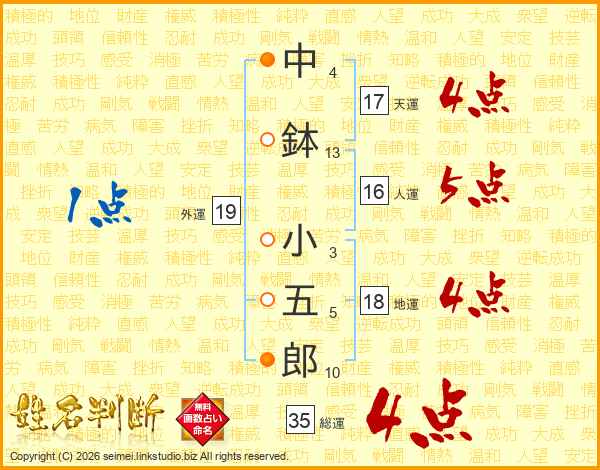中鉢小五郎さんの天運は17画の4点!