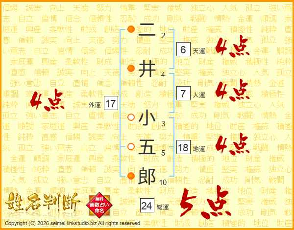 二(2画)井(4画) 小(3画)五(5画)郎(10画)