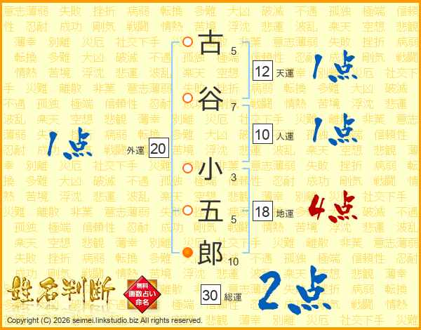 古谷小五郎さんの総運は30画の2点!