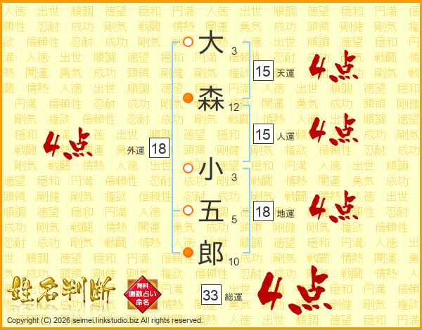 大森小五郎さんの総運は33画の4点!